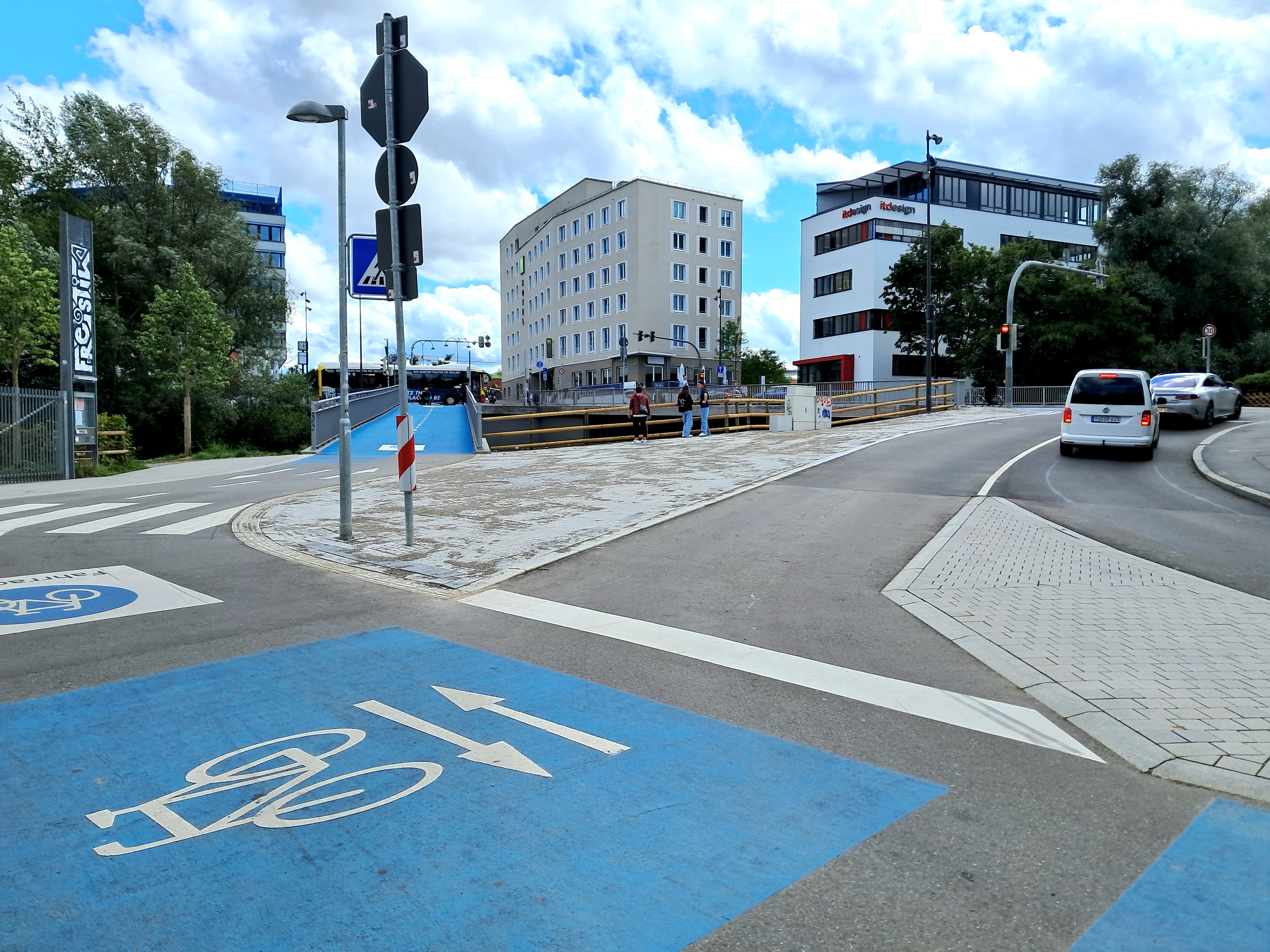 Besucher mit Fahrrad erreichen das Gericht aus Süden in direkter Linie auf Radwegen ab "Blauer Brücke" und Hauptbahnhof (Europaplatz). Dort befindet sich auch eine Tiefgarage für Fahrräder.