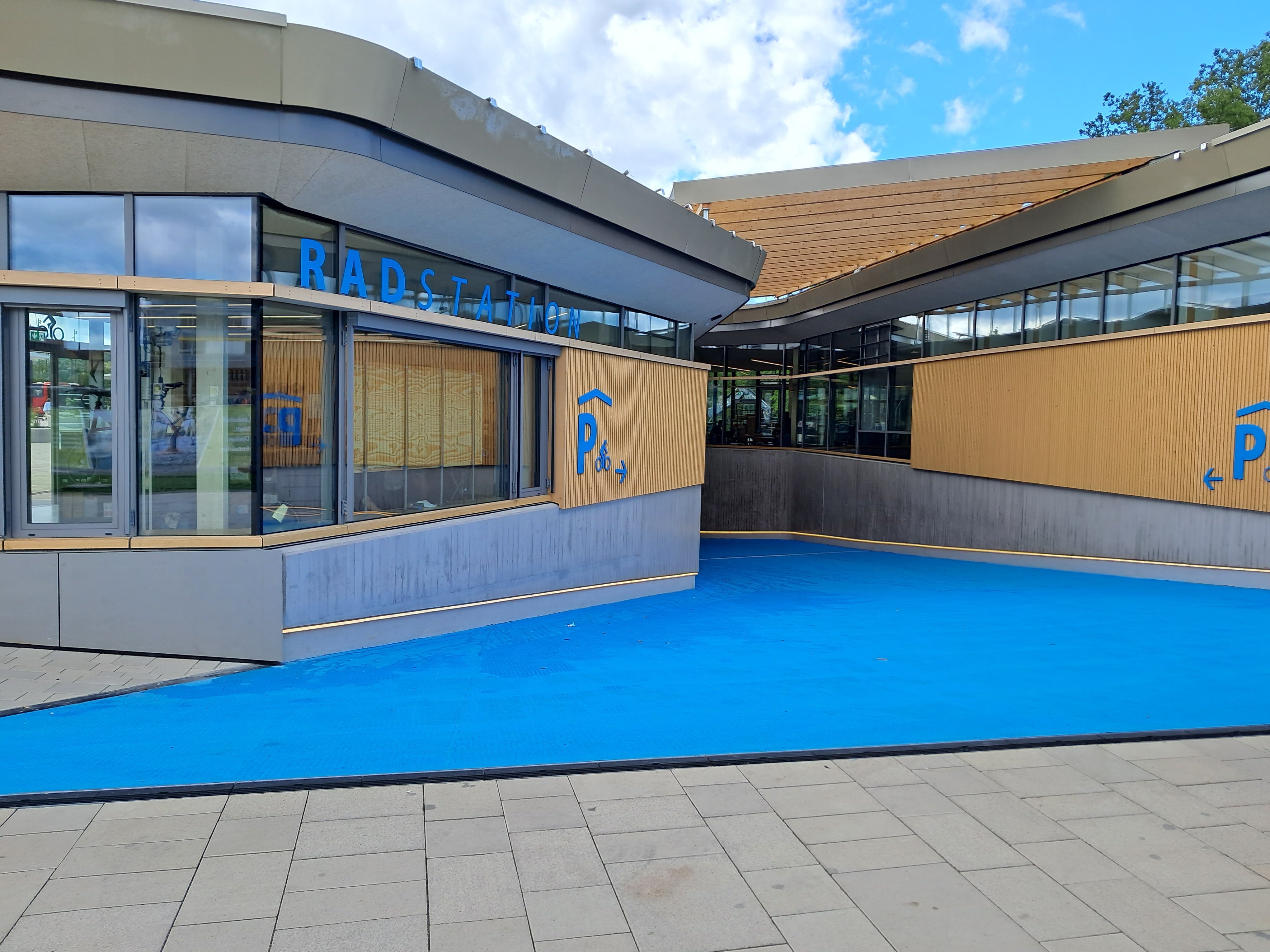 Die Radstation bietet oberirdisch zahlreiche Service-Dienstleistungen an: Kostenfreies Radparken, Schließfächer, Duschen, Radverleih, Reparatur und Waschen von Rädern, Abstellplätze im gesicherten Bereich